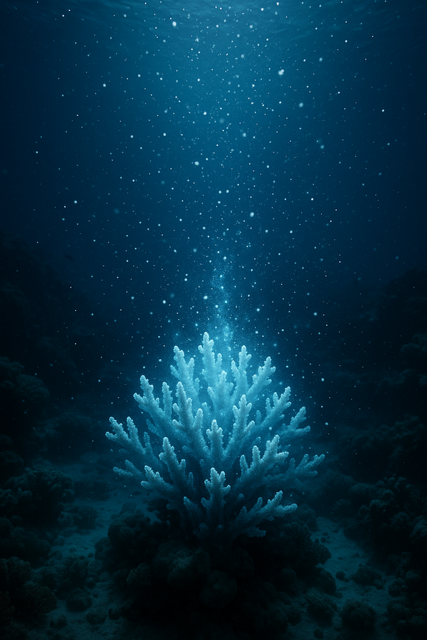 ……珊瑚が冷光を放つ季節。潮風にまじる微かな発光粒子が旅人の衣に舞う。