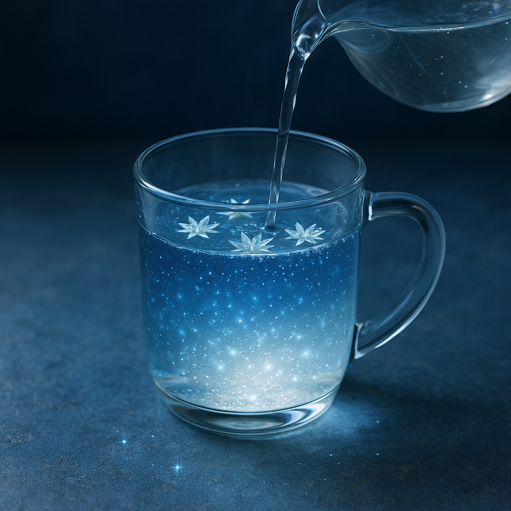 ……氷花を乾燥させた青いお茶。湯を注ぐと色が銀に変わる幻想の一杯。